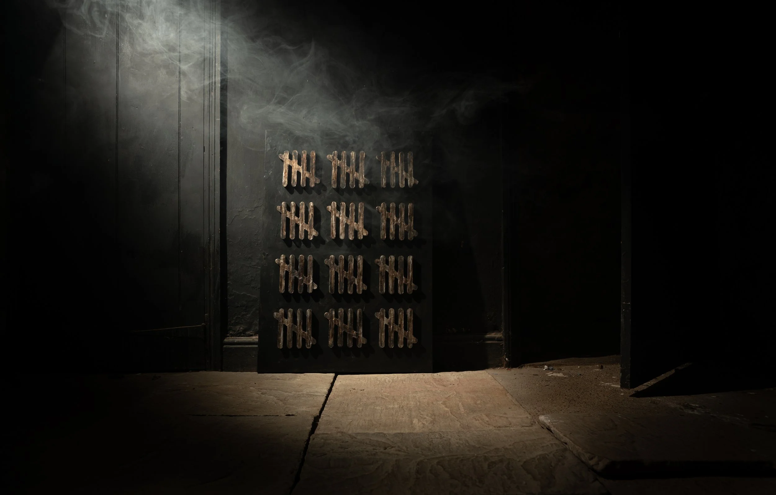 All the tally marks are three-dimensional and clad in aluminium foil, which has been previously used to smoke heroin from, with the metallic appearance bearing a resemblance to the bars of a prison cell. Again, relating to the feeling of being incarcerated within an addiction.